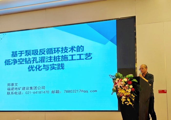 集团公司上海分公司技术骨干郑基文携带《基于泵吸反循环技术的低净空钻孔灌注桩施工工艺优化与实践》创新成果登台分享。其内容聚焦南京科举博物馆二期项目中低净空施工难题,集团公司针对该难题,创新三大核心技术:定制fxz-350型低净空反循环钻机,使设备高度较传统工艺降低40%;采用滚筒龙门架精准吊放钢筋笼;优化水下混凝土泵送工艺。技术团队在地下室净高2.3米的条件下,完成191根钻孔桩施工,桩基合格率达100%,工期缩短20%,实现“双低”目标。该项目成套技术措施为城市更新提供可复制方案,其创新工艺获专家认可。